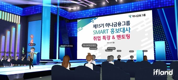 [FETV=권지현 기자] 하나금융그룹은 지난 9일 메타버스(3차원 가상세계) 플랫폼을 활용해 제15기 하나금융그룹 스마트(SMART) 홍보대사 55명을 대상으로 언택트 취업특강과 멘토링을 실시했다고 10일 밝혔다.