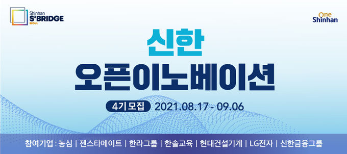 [FETV=권지현 기자] 신한금융그룹이 운영하는 스타트업 육성 플랫폼 '신한 스퀘어브릿지(S² Bridge) 서울'에서 8월 17일부터 9월 6일까지 '신한 오픈이노베이션' 4기 프로그램에 참여할 스타트업을 모집한다.