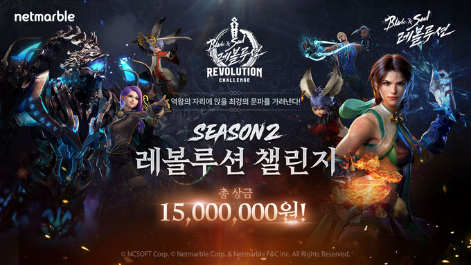 [FETV=김창수 기자] 넷마블은 모바일 MMORPG(다중접속역할수행게임) '블레이드 & 소울 레볼루션’의 온라인 게임대회 ‘레볼루션 챌린지 시즌2’를 예고하고 참가자를 모집한다고 밝혔다.