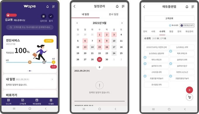 와플앱은 고객 관련 정보를 하나의 모바일 앱에서 쉽고 간편하게 관리할 수 있는 영업지원시스템이다. 빨간펜은 소속 에듀플래너들이 단순 업무에 시간을 낭비하지 않고 더 중요한 업무를 수행하는데 집중해 고객에게 차별화된 서비스를 제공할 수 있도록 와플앱을 개발했다. 이는 AI와 빅데이터 역량을 강화하여 교원그룹 내 모든 사업을 혁신하고 디지털 전환 통한 지속 성장을 이어나가고자 하는 AI혁신과제 일환이다.