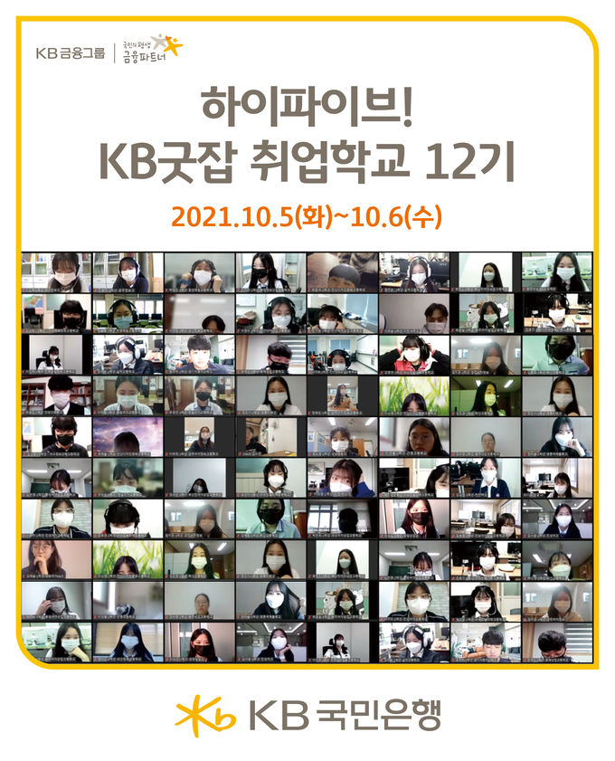 이번 KB굿잡 취업학교 제12기 참가자는 온라인 취업 캠프를 통해 비대면 채용 프로세스, 직무역량분석, 입사지원서 컨설팅, 화상면접, 인공지능(AI)면접전략 등 취업 필수 과정을 교육받았다. 캠프 종료 후에도 참가자는 내년 2월 말까지 약 6개월 동안 매월 전담 컨설턴트와 일대일 맞춤형 취업컨설팅을 통해 정기적인 진로 상담 및 우수기업과의 취업 매칭 등 다양한 혜택을 누리게 된다.