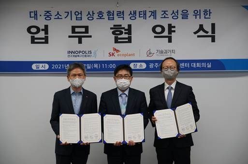 광주연구개발특구본부에서 열린 이날 협약식에는 김관용 SK에코플랜트 SCM그룹장, 유진혁 광주연구개발특구본부장, 황규진 기술과가치부사장 등 관계자가 참석해 협력방안을 합의했다.