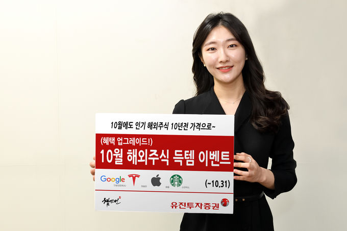 유진투자증권은 지난달 처음 진행한 ‘해외주식 득템 이벤트’에 대한 고객들의 높은 호응에 따라 이번 달에도 해당 이벤트를 마련하게 됐다. 지난달에 비해 추첨 인원을 늘리는 등 혜택을 강화했다. 10월 한 달 동안 해외주식을 처음으로 거래한 유진투자증권 온라인 계좌 보유 고객을 대상으로 진행되며 해외주식 거래금액(매수·매도 포함)이 500만원 이상이면 이벤트 신청 후 참여할 수 있다.