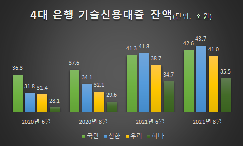 금융권은 기술신용대출의 경우 ESG 경영의 일환인 '포용적 금융'과 연관돼 있어 향후 확보 경쟁이 치열할 것으로 보고 있다. 여기에 지난 8월부터 금융당국이 가계대출 총량 관리에 나선 만큼 은행들은 혁신 중소기업을 상대로 대출 영업의 한계를 돌파한다는 계획이다.