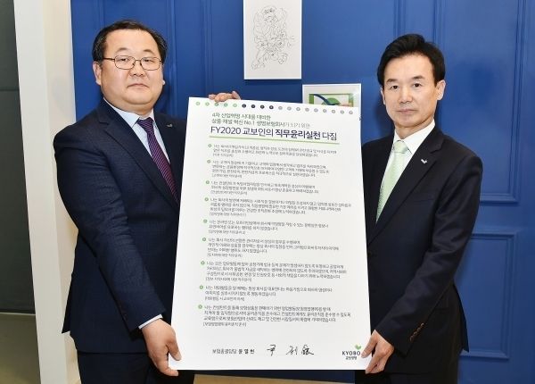 뿐만 아니라 교보생명은 정도‧윤리 경영에 대한 책임감도 강하다. 금융회사로서 이행해야 할 책임에 대해 명확히 인식하면서 내부적으로는 ‘교보인의 직무윤리헌장’을 제정해 임직원 스스로 성실한 자세로 업무에 임하도록 하고 있다. 윤리헌장에는 높은 직무윤리 의식과 행동을 바탕으로 교보인의 핵심 목적과 가치를 실천하는 것이 지속 가능한 성장을 향한 빠른 길이라는 내용이 들어있다.