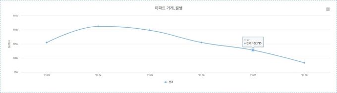 1일 한국부동산원에 따르면 전국의 주택시장이 얼어 붙었다. 실수요자인 무주택자가 돈이 없어 매매시장 문턱에서 발길을 돌려서다. 실제 부동산원이 홈페이지에 게재한 부동산 거래 현황을 보면 지난 4월 아파트 거래량은 11만1192건이다. 이후 계속 줄어든 아파트 거래량은 8월 9만8278건을 기록했다. 4달 만에 아파트 거래량 1만2914건이 감소한 것이다.