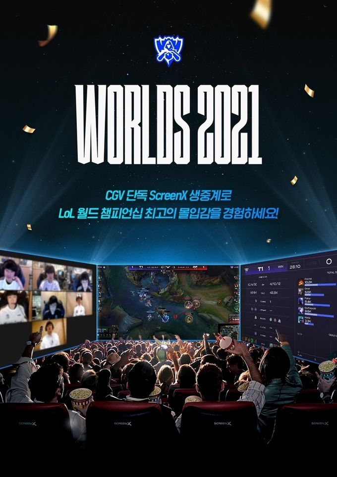 [FETV=김수식 기자] CGV가 오는 6일 오후 9시에 열리는 담원 기아와 Edward Gaming의 ‘2021 리그 오브 레전드 월드 챔피언십’(이하 2021 월즈) 결승전 경기를 전국 37개 스크린X관에서 생중계한다고 2일 밝혔다.