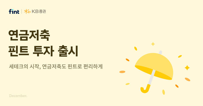 최근 국내 연금시장 규모가 나날이 커지며 고도화된 AI 알고리즘을 활용한 연금 투자가 주목을 받는 가운데, 디셈버앤컴퍼니와 KB증권이 손을 맞잡고 중·장기 투자에 최적화된 핀트 AI 간편투자 기반의 연금저축 서비스를 새롭게 선보이면서 핀트 고객은 보다 폭넓은 자산관리 서비스를 받을 수 있게 됐다.