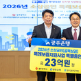 [FETV=임종현 기자] 광주은행은 22일 광주광역시청에서 강기정 광주광역시장, 정일선 광주은행장, 염규송 광주신용보증재단 이사장 및 관계자가 참석한 가운데 ‘2026년 소상공인 특례보증 대출 지원사업 협약’을 체결했다고 밝혔다. 이번 협약을 통해 광주은행은 고금리와 경기침체 등으로 어려움을 겪는 광주지역 소상공인(골목상권)에 대한 금융지원 확대를 위해 23억원을 특별출연했다. 이를 재원으로 광주신용보증재단은 총 466억원 규모의 특례보증을 지원하며 광주광역시는 1년간 3~4%의 이차보전을 지원할 계획이다. 소상공인 특례보증 융자 지원 대상은 유흥·도박·사행성 업종 등 일부 업종을 제외한 광주지역 소재 소기업·소상공인·자영업자 전 업종이다. 업체당 최대 5000만원까지 지원받을 수 있다. 대출 기간은 7년 이내다. 보증 신청은 오는 26일부터 광주은행 Wa뱅크 앱과 광주신용보증재단 보증드림 앱을 통한 비대면 방식으로 가능하다. 비대면 신청이 어려운 경우에는 광주신용보증재단 영업점을 방문해 대면 신청도 가능하다. 한편 광주은행은 2020년부터 현재까지 광주광역시 소상공인(골목상권)을 위해 총 93억원을 특별출연하고 총 2209억원 규모의 특례보증대출을 공급해