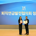 [FETV=장기영 기자] 미래에셋생명은 고용노동부가 주관한 ‘2025년 퇴직연금사업자 평가’에서 노동부 장관 특별상을 수상했다. 이번 평가에서 미래에셋생명은 퇴직연금 운용 전문성과 고객 중심 서비스 체계 고도화 성과를 인정받았다. ‘퇴직연금발전협의회 정기총회’에 참석해 상을 받은 전순표 연금영업부문대표(오른쪽)와 정현영 연금영업2본부장이 기념촬영을 하고 있다. [사진 미래에셋생명]