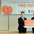 [FETV=장기영 기자] 한화생명은 암 경험 청년의 사회 복귀를 지원하기 위한 기부금 1억원을 대한암협회에 전달했다. 이번 기부금은 지난해 8월부터 12월까지 진행한 사회공헌 캠페인 ‘다정한 속도’를 통해 조성했으며, 암 경험 청년의 자립을 돕는 ‘위 케어 리셋(WE CARE RESET)’ 사업에 전액 사용될 예정이다. 지난 6일 서울 여의도 63빌딩 한화생명 본사에서 진행된 기부금 전달식에 참석한 임석현 한화생명 기획실장(왼쪽)과 이민혁 대한암협회 회장이 기념촬영을 하고 있다. [사진 한화생명]
