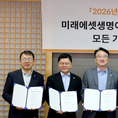 [FETV=장기영 기자] 미래에셋생명은 금융소비자 보호를 강화하기 위한 ‘2026년 소비자중심경영 실천 선포식’을 개최했다. 각자대표이사 김재식 부회장, 황문규 부사장과 주요 부문대표 등 경영진은 ‘고객의 믿음에 답하겠습니다. 모든 기준은 오직 고객입니다’라는 슬로건을 선포하고 소비자중심경영 실천 서약서에 서명했다. 서울 여의도 미래에셋생명 본사에서 진행된 선포식에 참석한 김 부회장(왼쪽 네 번째)과 황 부사장(다섯 번째)이 서약서를 들어 보이고 있다. [사진 미래에셋생명]