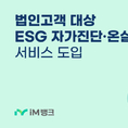 [FETV=권현원 기자] iM뱅크는 법인고객의 ESG경영 역량 강화를 통한 기업가치 제고를 위해 무료로 이용할 수 있는 ‘ESG자가진단 및 온실가스 계산기 서비스’를 도입했다고 28일 밝혔다. ‘ESG자가진단 및 온실가스 계산기 서비스’는 ESG관련 규제 강화와 정보 공시 요구 확대에 따라 고객이 직접 ESG경영수준과 온실가스 배출현황을 보다 간편하고 체계적으로 점검할수 있도록 지원하기 위해 마련됐다. iM뱅크의 ‘ESG자가진단 및 온실가스 계산기 서비스’는 법인고객이라면 무료로 이용할 수 있으며, iM뱅크 기업뱅킹 앱의 ‘생활제휴’ 메뉴와 iM뱅크 기업뱅킹 홈페이지의 ‘ESG’ 메뉴를 통해 확인할 수 있다. ‘온실가스 계산기’는 기업이 최소한의 자료로 직접 온실가스 배출량을 산정할 수 있고, ‘ESG자가진단’은 기업 ESG경영 수준을 점검할 수 있는 간편 문진형 평가 서비스다. 특히 진단 결과에 따른 맞춤형 개선 가이드를 제시해 기업 지속가능성장을 지원한다. 특히 iM뱅크는 서비스 제공을 위해 ‘㈜리빗(LIVIT)’과 협업을 진행했다. ㈜리빗은 환경분야 전문성과 기술력을 접목해 시너지를 내는 탄소배출관리 솔루션 개발업체다. 강정훈 은행장은 “ESG가 경영의
