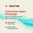 [FETV=신동현 기자] 크래프톤은 AI의 게임 플레이 능력을 평가하는 글로벌 경진대회 ‘Orak 챌린지’를 개최하고 참가자 모집에 나선다고 10일 밝혔다. 이번 대회에는 NVIDIA, AWS, OpenAI가 공식 후원사로 참여한다. ‘Orak(오락)’은 AI가 게임 속에서 상황을 인식하고 판단하며 행동하는 전 과정을 수치화해 평가하는 체계로 AI의 전략적 사고력과 문제 해결 능력을 객관적으로 측정할 수 있다. 참가자들은 실제 상용 게임 환경을 기반으로 한 통합 인프라에서 자신이 개발한 모델을 테스트하고, 실시간 글로벌 리더보드를 통해 성과를 확인할 수 있다. 경진대회는 ▲Street Fighter III ▲Super Mario ▲Pokémon ▲StarCraft II ▲2048 등 5종의 게임으로 구성된다. 모델의 전략적 판단, 효율성, 문제 해결력 등을 종합적으로 평가하며, 참가팀은 최대 5명으로 구성할 수 있다. 우승자에게는 총상금 2만 달러가 수여되며 대회 참가자 전원에게 LLM 실험용 크레딧(총 4만5000달러 규모)이 제공된다. 상위권 팀은 크래프톤 AI 연구진과 함께 에이전틱(Agentic) LLM 기술 세션에도 참여할 수 있다. 참가 신청은 1